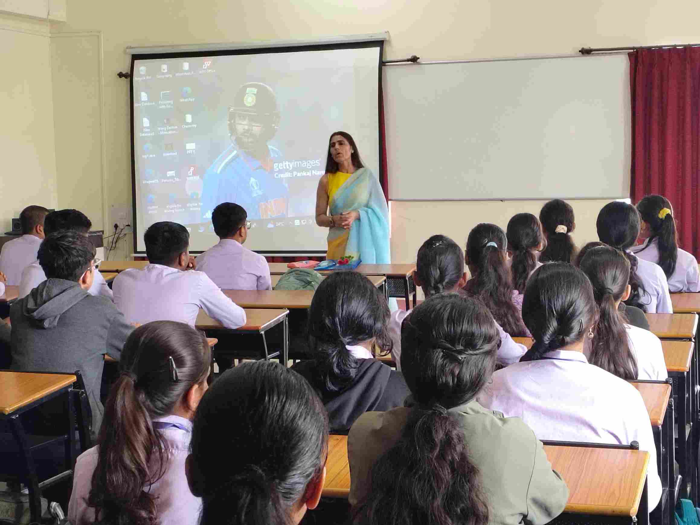 SBPCSC Commerce Department had arranged guest lecture on "Career Guidance on BBA course" for class 12th students. Dr. Manju Chopra, Dean, PCET's Pune Business School, guided students on BBA course and career opportunities after BBA.